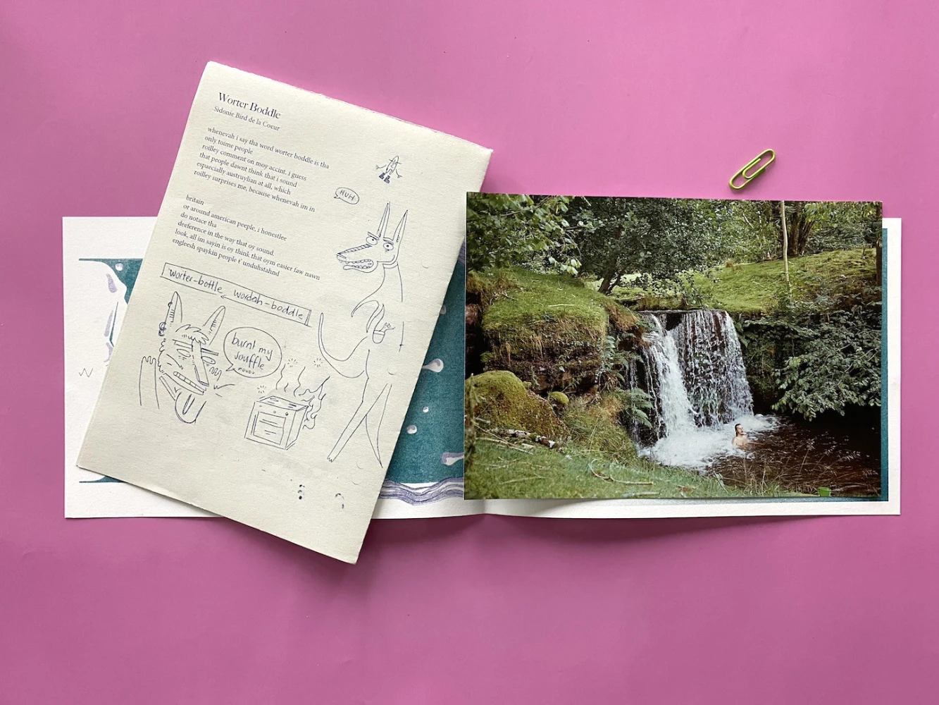 Published in Susanna Li’s zine devoted to water, Watery Erotics in Contaminated Times is an essay bridging living through the pandemic – where breath and vapour became symbols of danger – with the liberating and sensual experience of wild swimming. Incorporating illustrations by artist Hannah M. Morris and an interview with ambient producer and DJ Perila of Weird Erotic Tension, alongside a text by Niamh Ní Shíothcháin on oceans and migration, poetry by Mia Reilly-O, and a comic by Sidonie de la Coeur. Riso-printed on recycled paper with a photo insert. → Read