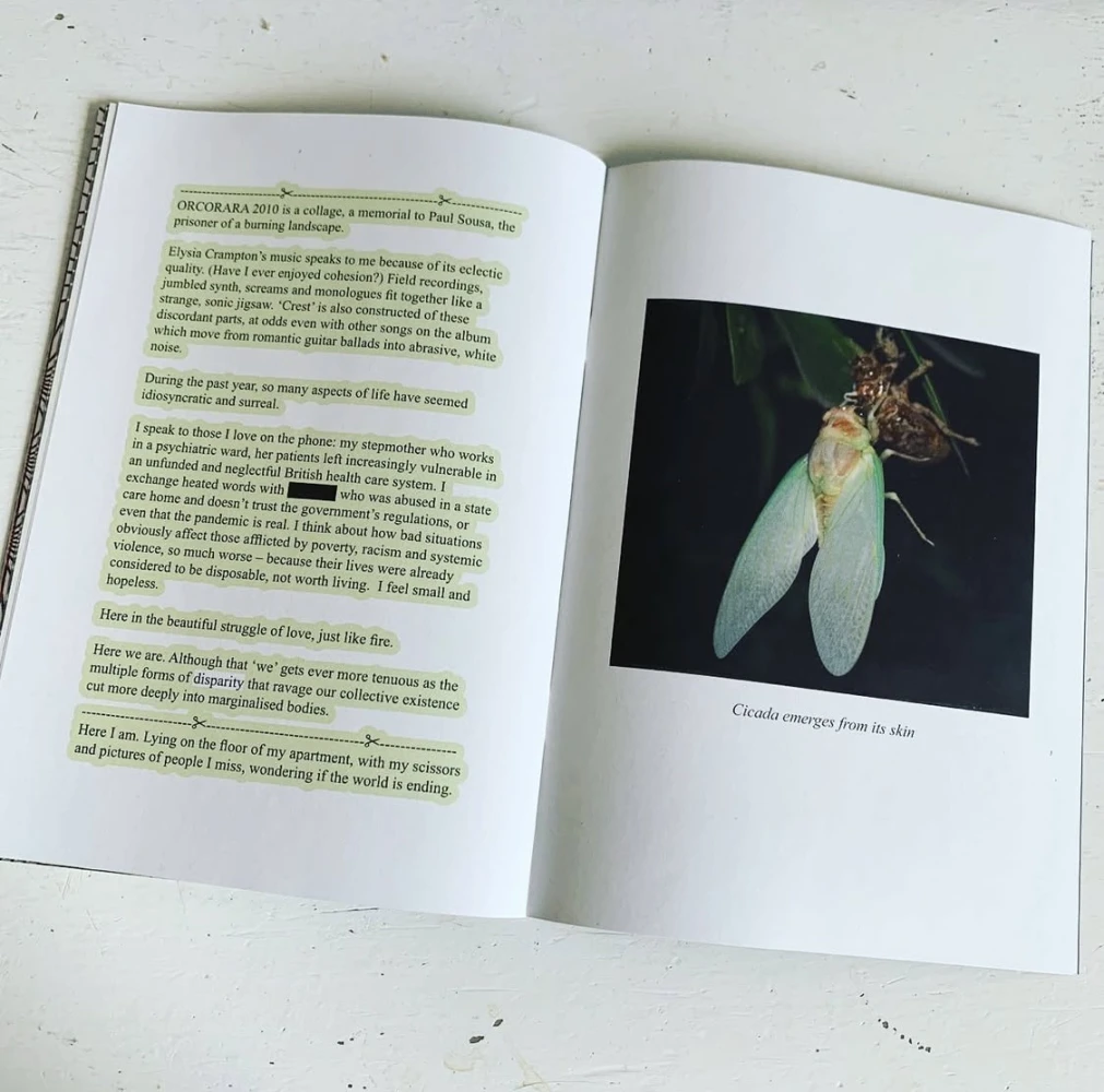 Twilight is a poetic meditation on collage, fire, and the music of Elysia Crampton, published by Future Ethics – a record label and zine devoted to fostering beauty and community in dance music. With a cover by Catalina Cavelight, photos from caner teker’s queered Turkish oil wrestling performance, a mind map on getting high without alcohol, and watercolours by Future Ethics founders Bee and Catherine. Further highlights include an in-depth interview with DanceSafe’s Mitchell Gomez, a fashion spread with Englesia, Faith Alexandra Marie, and DeForrest Brown Jr. (aka Speaker Music), and Asa Seresin’s reflection on queer nightlife post-pandemic, Spiral to Paradise. Also featured: an open letter from the Antifascist Music Alliance challenging Pitchfork, Resident Advisor, and Ostgut to confront Vatican Shadow’s fascist ties. → Read